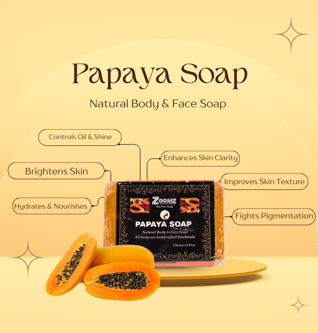 Reveal brighter, fresher skin with the natural exfoliating enzymes found in Papaya. This soap helps lighten pigmentation, reduce tanning, and gently remove dead skin cells for a smooth and glowing complexion. Perfect for everyday use, it improves texture, fades blemishes, and leaves the skin soft, even-toned, and refreshed.